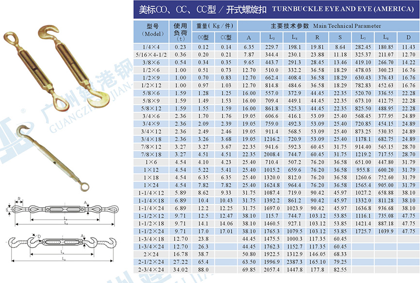 美標OO、OC、CC型-開式螺旋扣